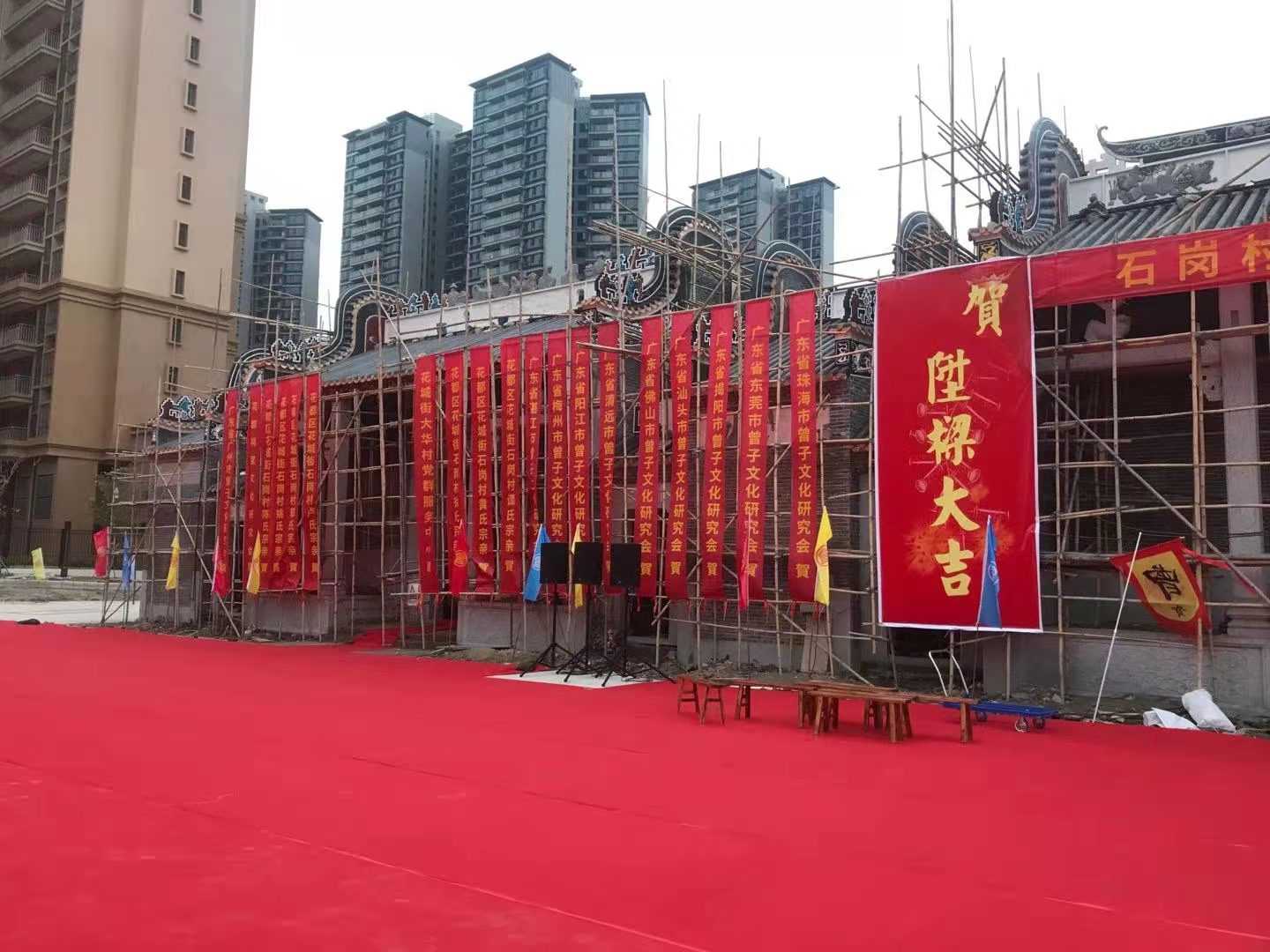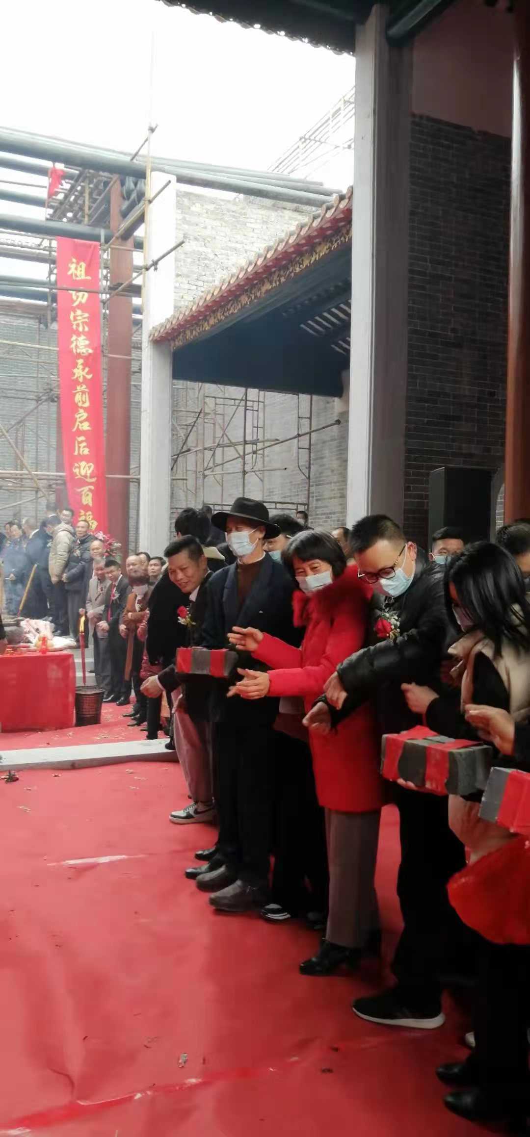 承蒙花都石岗村曾氏宗亲抬爱,笔者与曾氏宗亲网另一副总编健峰受盛邀,在筹备期间往返花都深圳两地三次,于公元2020年12月16日,前往花都石岗村参与曾氏宗祠陞樑之执礼司仪。忙碌之中,加加班,购买祭樑种籽、配祭器具物品,赞助陞樑之用。准备好陞樑前应备事务。笠日晨早七时,于宗祠再复查检漏,无虞,待时……。是日庚子仲冬初五吉日良辰,惠风和畅,正是筹策多时之花都石岗曾氏宗祠陞樑之喜。石岗曾氏族众,在宗祠广场前铺红结彩,挂竖幅贺条,五色彩旗随风飘,男女老少无不人人盛妆悦颜,热情高涨,恭迎各方前来贺庆观礼贵宾、嘉宾、乡绅、乡贤、宗亲人等,尽显礼仪、文明、城市化之村居。在舞狮锣鼓、在优美亲和之乐曲共鸣下,响彻整个空旷广场,场景甚是壮观恢宏,处处体现石岗曾氏一族超强组织能力及协调能力,是仍礼仪之村,堪为各地宗亲之楷模!