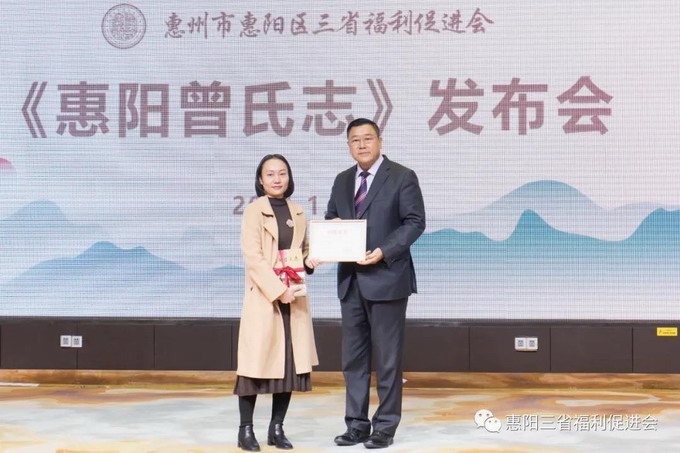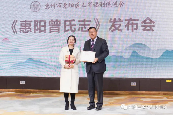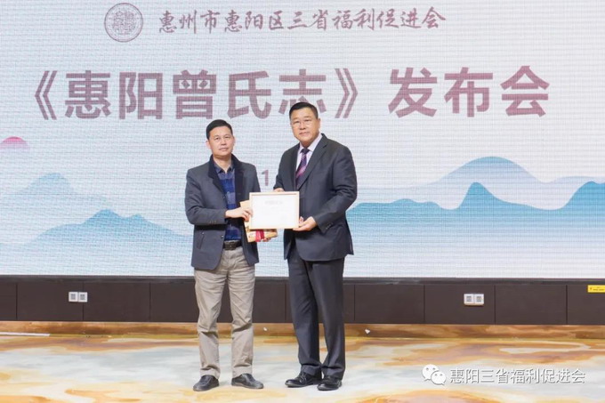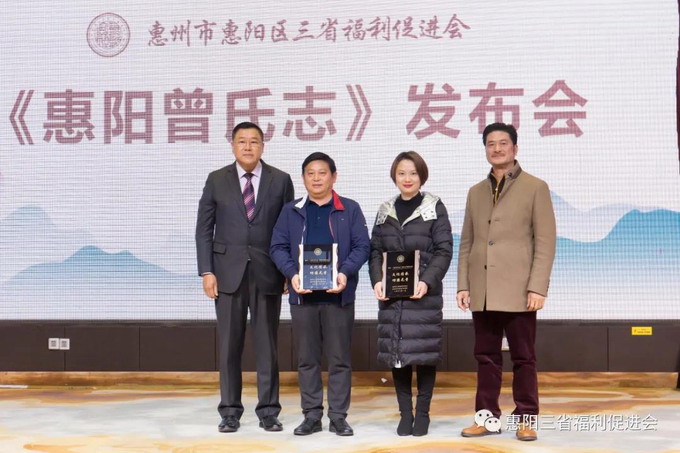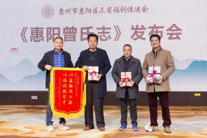 发布会上,惠阳区三省福利促进会向惠阳区文化广电旅游体育局、惠阳区社会科学界联合会、惠阳区党史办、惠阳区文明工作事务中心赠送了《惠阳曾氏志》。