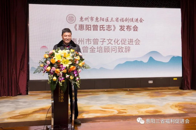 惠州市曾子文化促进会曾金培顾问在致辞中,对《惠阳曾氏志》的出版给予了高度评价和赞扬。