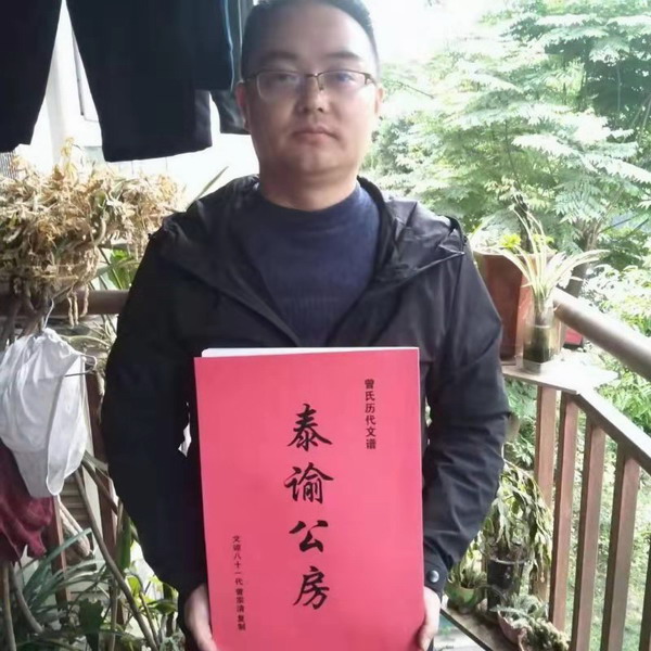 泰谕→延襁→文谅.....永相→载阳→文兴→世蘭→良问→学拯(玫,珉,玠,珣,玑贤),学拯公五子全部入川,在宜宾泸州一地落业发展。有了此谱,查询就有了基础性资料。 曾明礼(玠贤公支)支多代宗亲保存老谱有功,曾宗清(珣贤公支)当今查谱寻根有劳,令人称赞,你们都是当代曾氏功臣,功不可没。