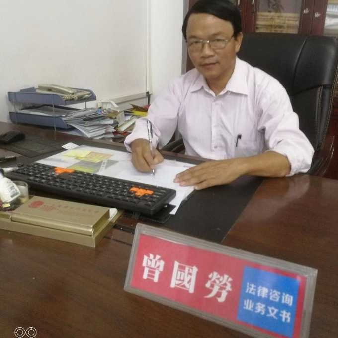 他利用懂法和从事执法工作积累了丰富经验的优势,开办“劳力法律咨询服务部”,为社会提供法律义务服务,教育群众遵纪守法,启示基层干部依法行政,按政策办事,不走邪门歪道,少走弯路,减少犯错,窥避风险。帮助有需求的群众排忧解难,义务代写有关诉讼或合同文书,免费耐心向咨询者解释有关法律和政策,代表弱势群体通过走法律途径为承包土地维权,劝告村民不要违法上访,避免打斗事件发生。曾国劳于2016年退休后,申领了“博罗县园洲镇劳力法律咨询服务部”营业执照,开设了工作茶室五年来,共为社会人士、外来工、当地群众义务法律咨询接待400多人次,免费代写合同、起草法律文书200多份,调解民事纠纷50多宗,劝和闹矛盾打算离婚的夫妇20多对,免费为受欺凌的妇女儿童打官司及协助办公证3宗,义务垫支为农村弱势农户维权打官司3起。2017年7月为一宗受虐待多次被殴打致轻伤的特困外来工家庭妇女提供法律援助与经济捐助约一万元。于2017年1月7日,为老家园洲镇义合村曾温小组成功制止了一宗因侵犯土地承包权引发几十人争斗,避免一起流血事件的发生。并引导他们走法律途径,经过四年艰难维权,取得了正义的判决结果,为弱势农户争取了的权益,犹如给当地行政单位与村组干部上了一堂依法行政、服务基层的法制课。除此之外,他多次为被侵权的受害村民拍照维权现场,并予视频播放和报道事件真相,因而遭到一些不明真相的人的威胁和恐吓。然而曾国劳却毫不在乎,他以“服务至上,息事宁人,取信于民,维护正义”为宗旨,坚持“对社会、对群众有公心、有热心、有良心;不徇私、不枉法”的‘三心两不’原则。“理直才能气壮,无私才能无畏”,献身于法治社会。树立“一心为大众,舍得一身剐,无怨无悔,胸怀正义向青天,全心全为公益,乐善好施度夕阳”的人生理念与奋斗目标。