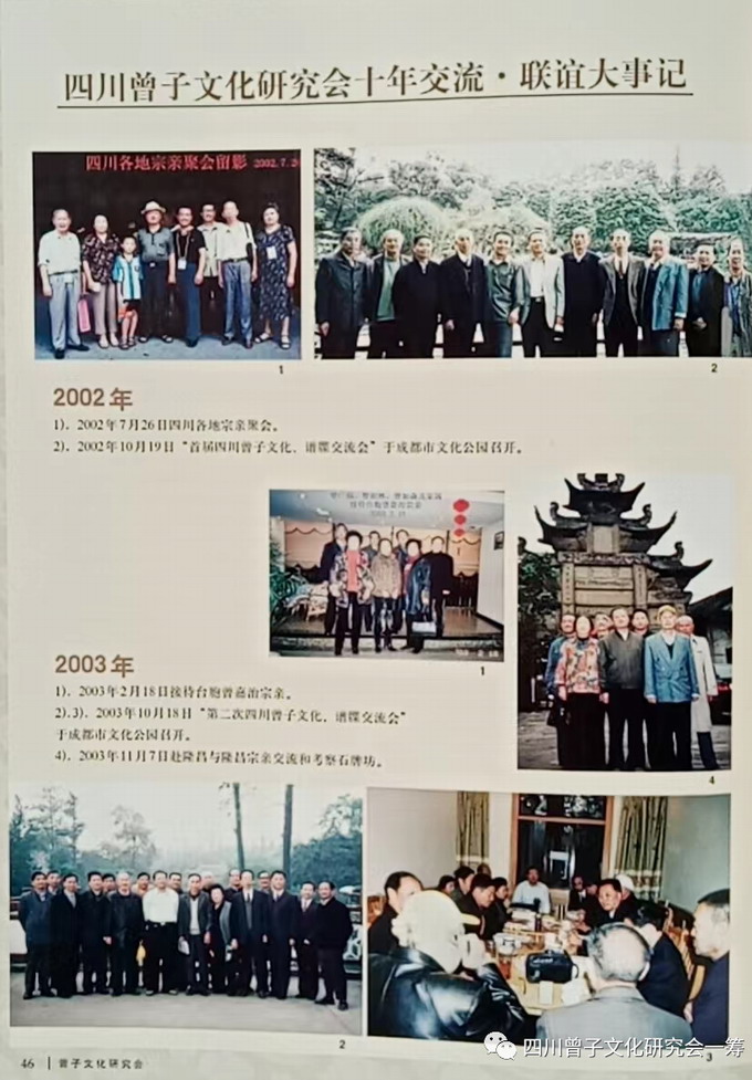 2002年10月19日,研究會創會會長曾廣福與12位宗親代表在成都市文化公園召開了第一次代表大會,開啟了四川曾子後裔傳承和弘揚曾子文化的光輝歷程。