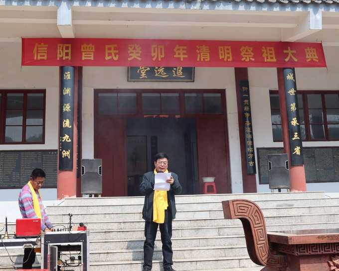 2023年4月1日,信阳市曾子文化研究会在浉河区董家河镇曾湾“曾氏宗祠”举行癸卯年清明祭祖大典,研究会理事以上成员、各县分会宗亲代表,约165名宗亲代表参加此次祭拜活动。祭拜活动由研究会会长宪付主持,名誉会长昭贵主祭。陪祭有研究会监事长庆棠、研究会顾问曾鼎、新县分会会长宪森、光山分会会长宪生、商城分会会长繁林、固始分会福安等,副会长宪政恭读祭文,祭拜礼成后各位宗亲在大殿前合影留念。