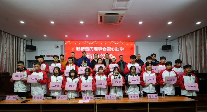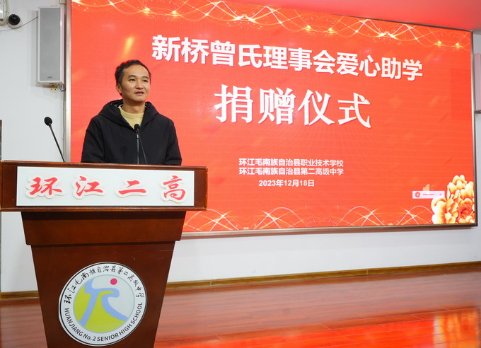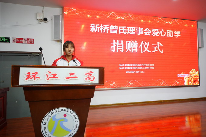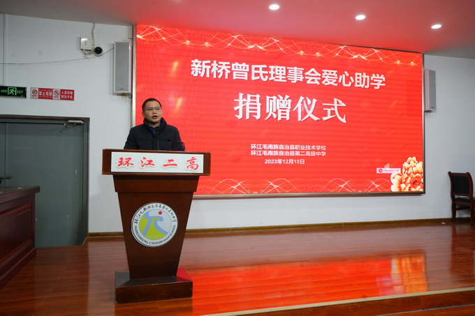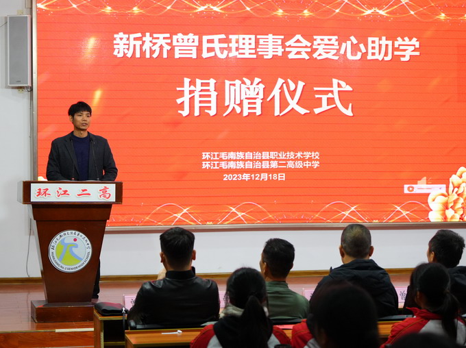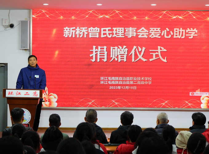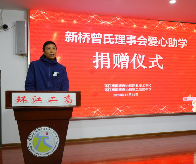 本次扶贫助学活动,由本会理事长曾国祥、副监事长曾建锋、副理事长曾景林;理事曾敬棠、曾冠坤、曾鹏;热心人士:黄介明等参与。2023年12月18日到广西环江毛南自治县环江第二高级中学开展助学及帮困公益活动;支助该校50名学生及两个困难家庭。