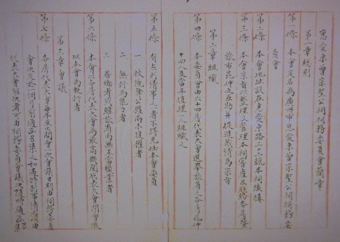 第一条:本会定名为“广州市惠爱东曾宗圣公祠祠务委员会”。