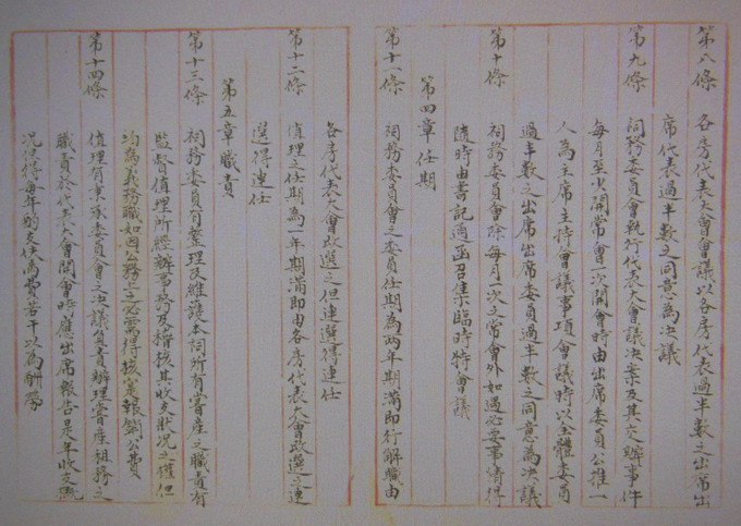 第十二条:值理之任为一年,期满即由各房代表大会改选之,连选得连任。
