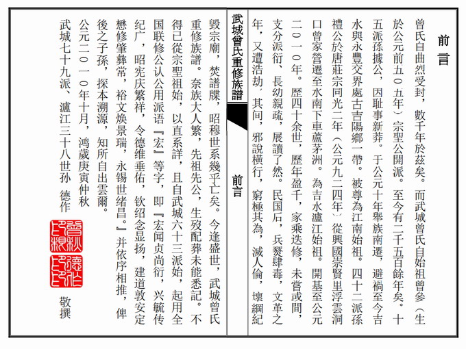 《大万曾氏重修族谱序 》(曾观来,2009-2-7,41549)